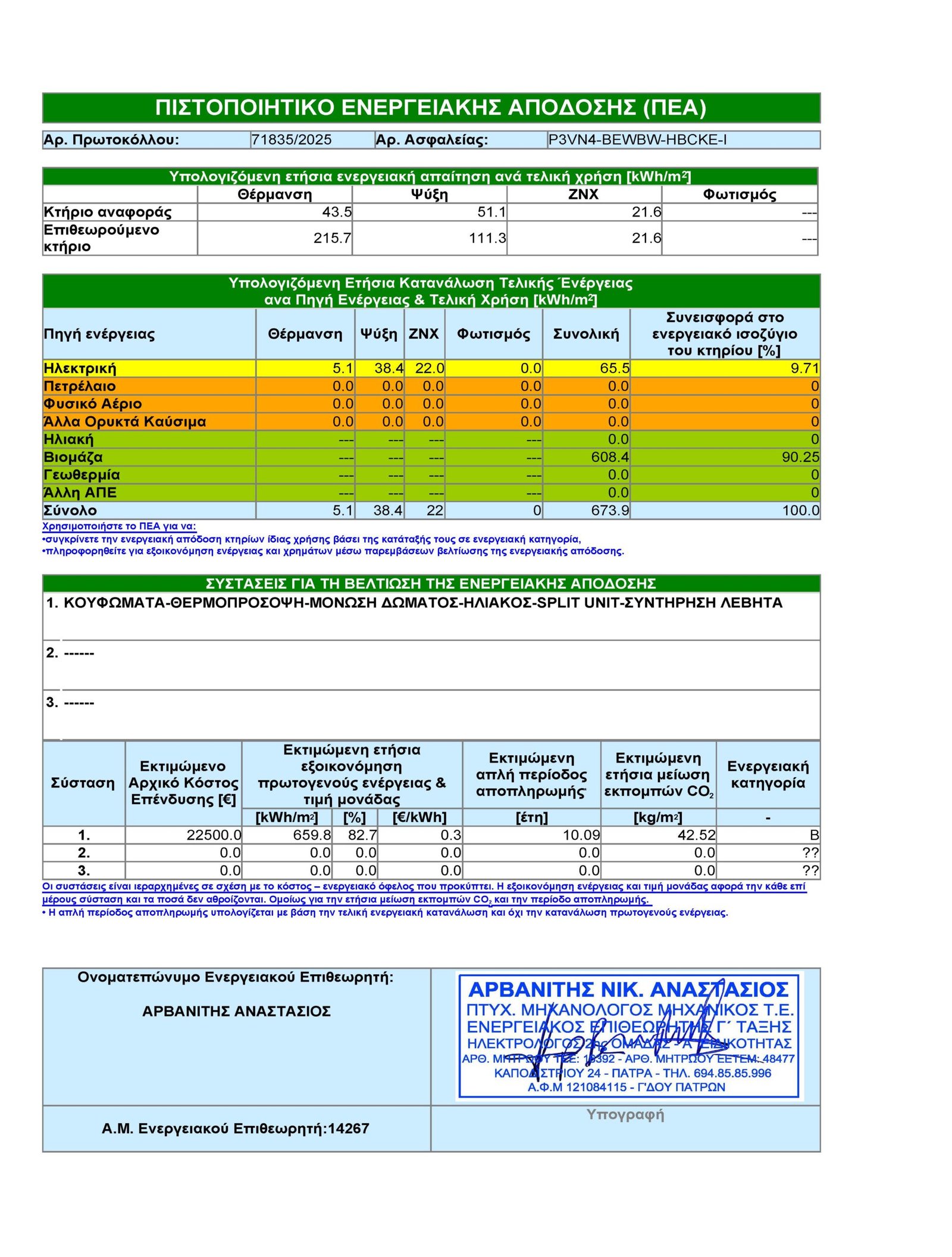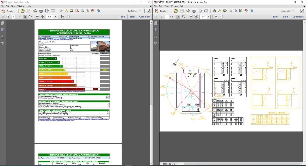 Εκδίδουμε το Ενεργειακό Πιστοποιητικό του ακινήτου σας από 80€ + ΦΠΑ. Το πιστοποιητικό ενεργειακής απόδοσης ΠΕΑ ή ενεργειακό πιστοποιητικό, είναι ένα αναγνωρισμένο από το ΥΠΕΚΑ έγγραφο που εκδίδεται από Ενεργειακό Επιθεωρητή (ο οποίος έχει ενταχθεί σε ειδικό Μητρώο) , στο οποίο αποτυπώνεται η ενεργειακή απόδοση του κτιρίου. Με το πιστοποιητικό ενεργειακής απόδοσης ΠΕΑ το κάθε κτίριο κατατάσσεται σε ενεργειακή κατηγορία (υπάρχουν εννέα κατηγορίες, από Α+ έως Η), ενώ ο Επιθεωρητής καταγράφει συστάσεις δια τη βελτίωση της ενεργειακής απόδοσης του κτιρίου. Το ενεργειακό πιστοποιητικό απαιτείται για τη μεταβίβαση ή νέα σύμβαση μίσθωσης όλων των κτιρίων είτε πρόκειται για κατοικία είτε για επαγγελματική στέγη. Σε κάθε μίσθωση ακινήτου, ο αριθμός πρωτοκόλλου του πιστοποιητικού πρέπει να αναγράφεται στο μισθωτήριο. Στις μεταβιβάσεις, οι συμβολαιογράφοι υποχρεούνται να μνημονεύουν και να επισυνάπτουν το ΠΕΑ στο συμβόλαιο μεταβίβασης.